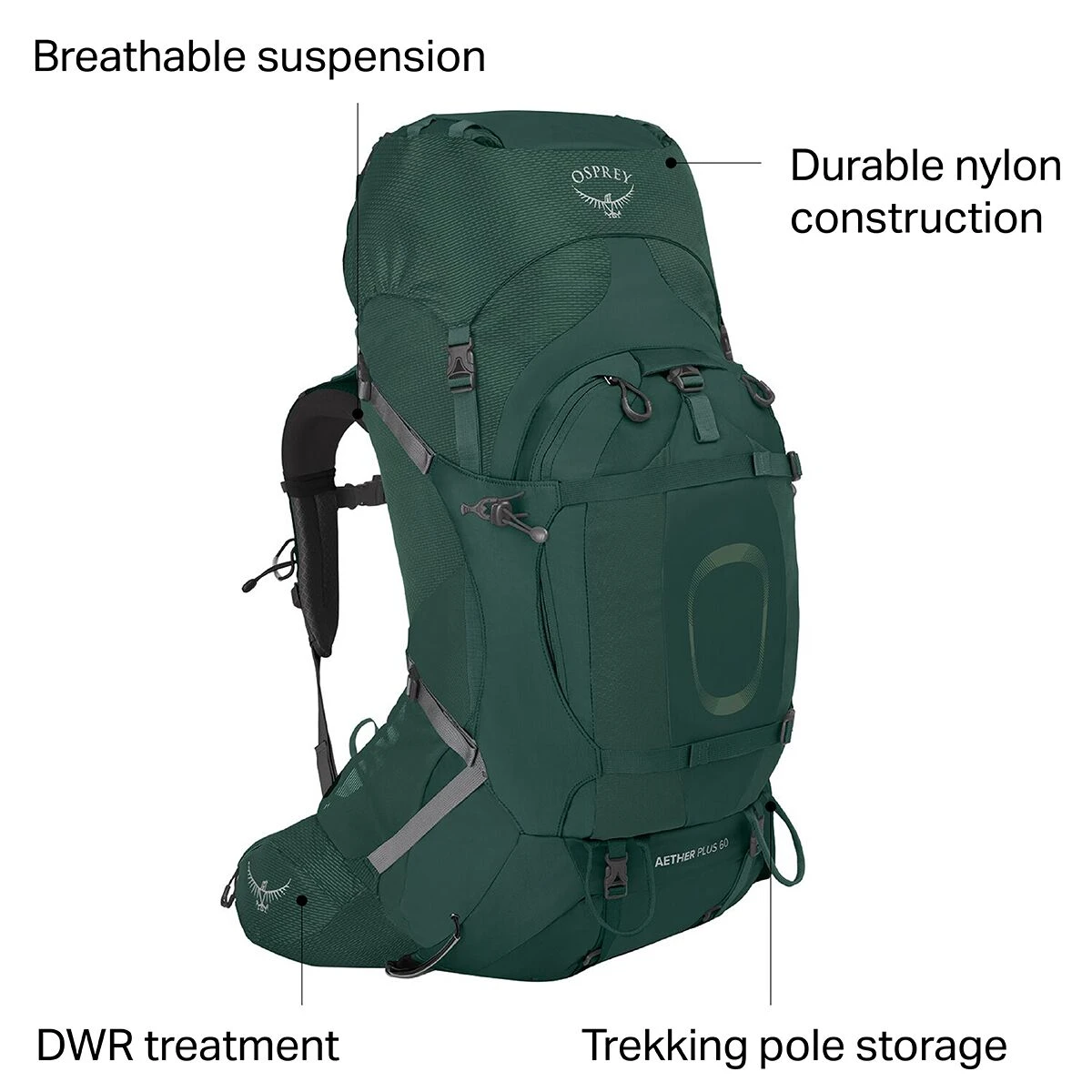 - 60L capacity for longer treks or shorter gear-intensive missions